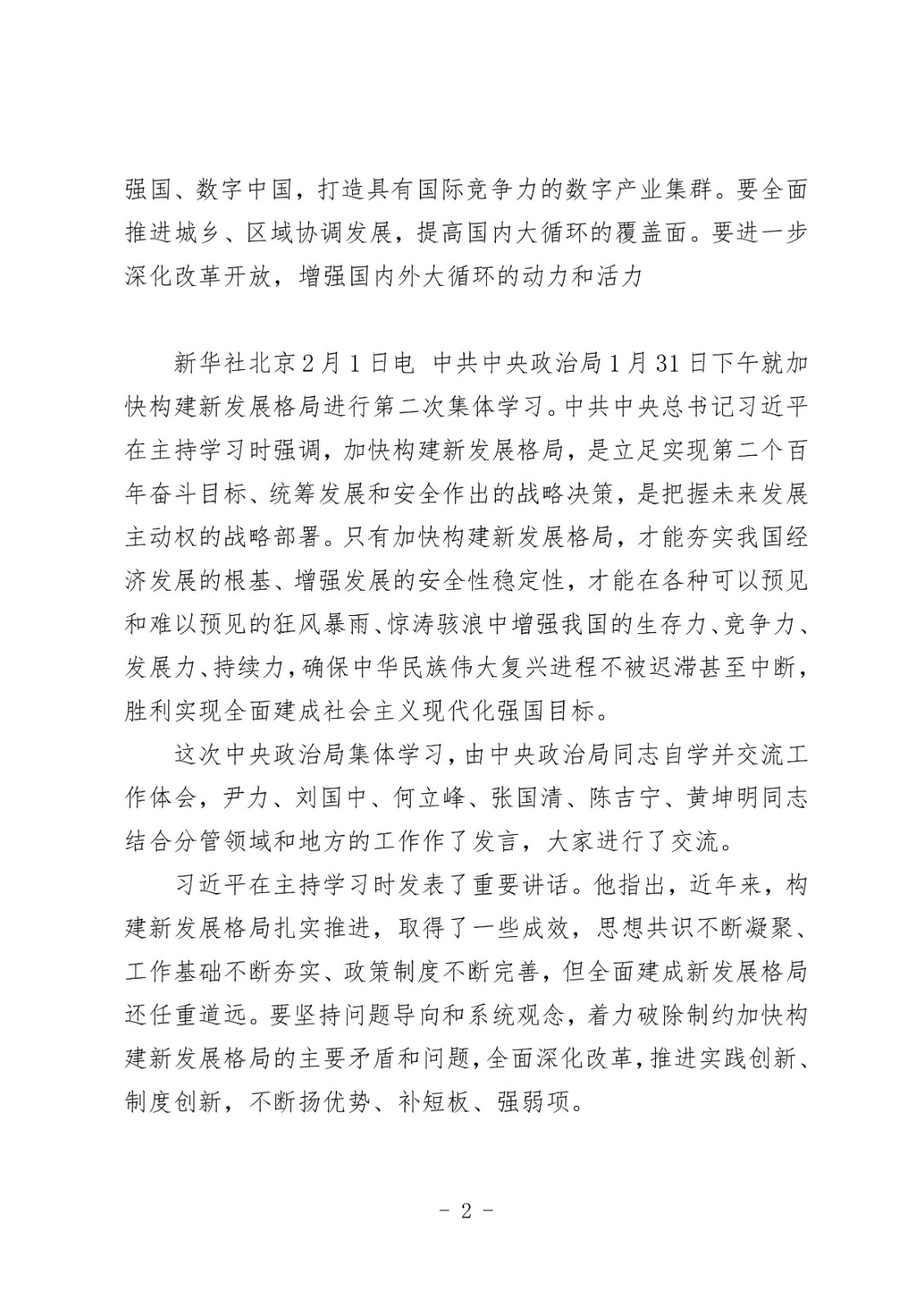习近平在中共中央政治局第二次集体学习时强调加快构建新发展格局 增强发展的安全性主动权