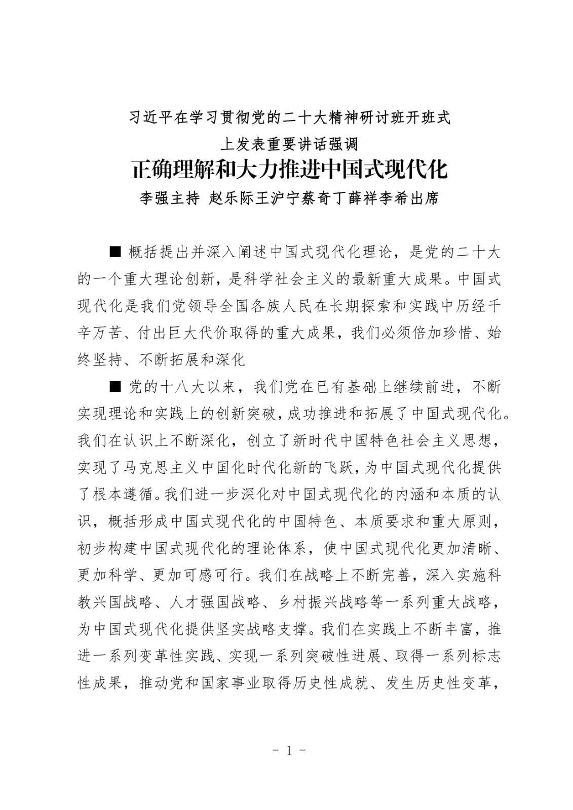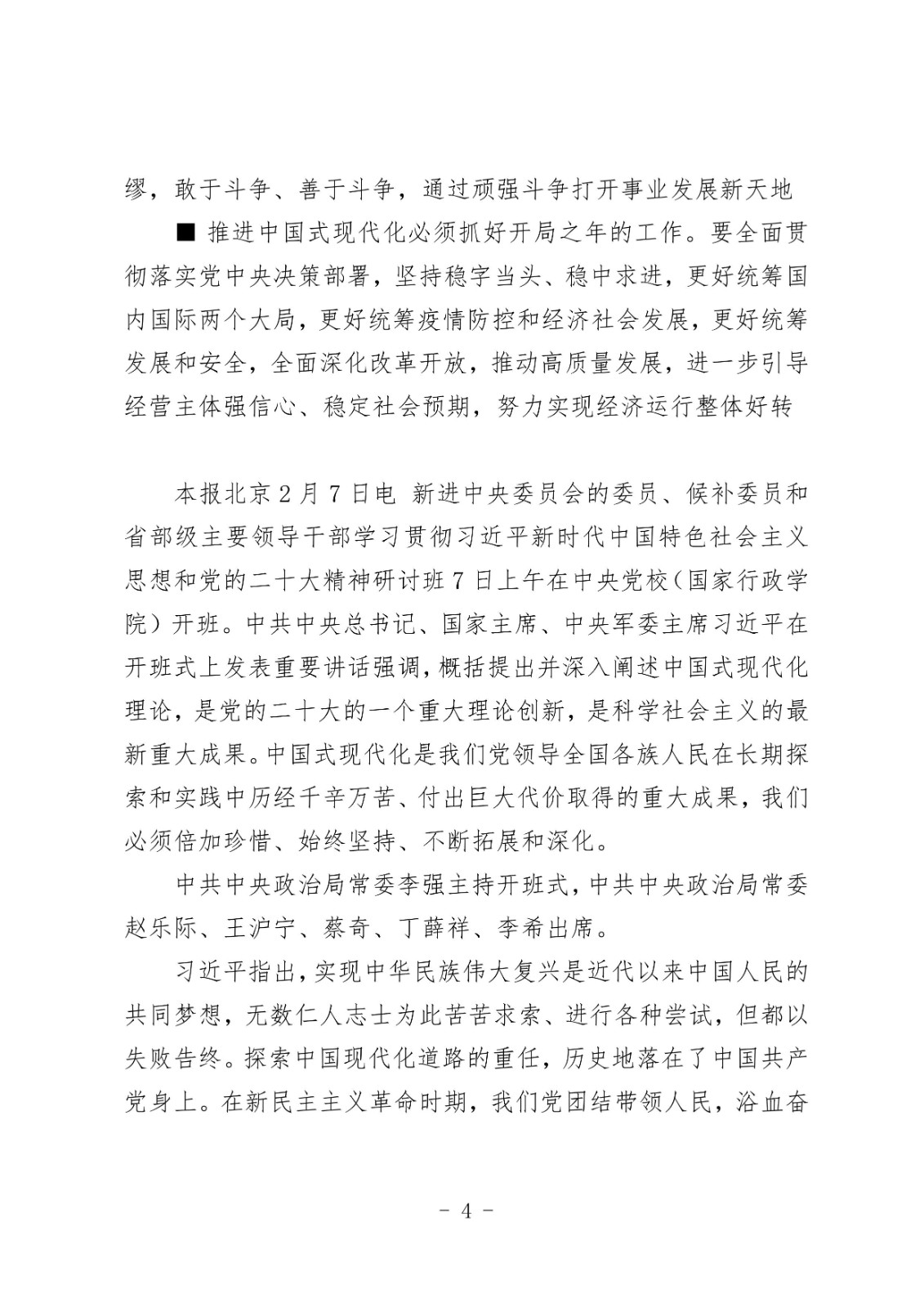 习近平在学习贯彻党的二十大精神研讨班开班式上发表重要讲话强调正确理解和大力推进中国式现代化