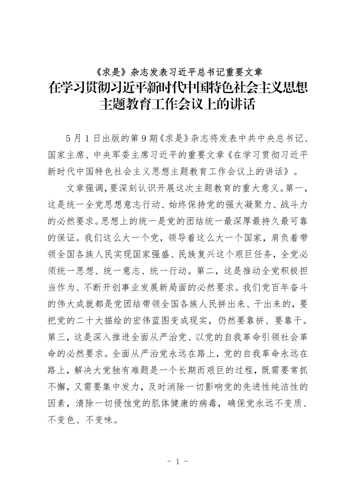 《求是》杂志发表习近平总书记重要文章在学习贯彻习近平新时代中国特色社会主义思想主题教育工作会议上的讲话