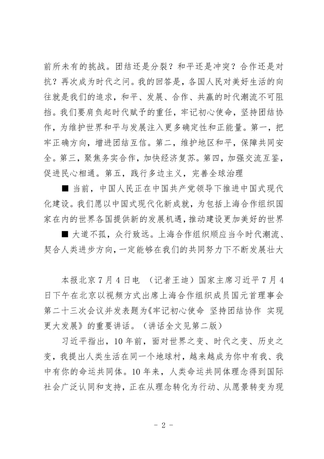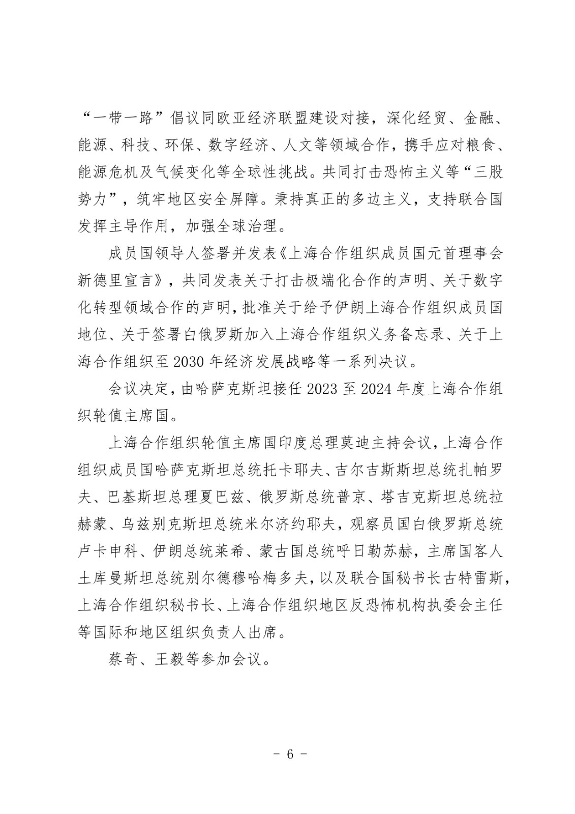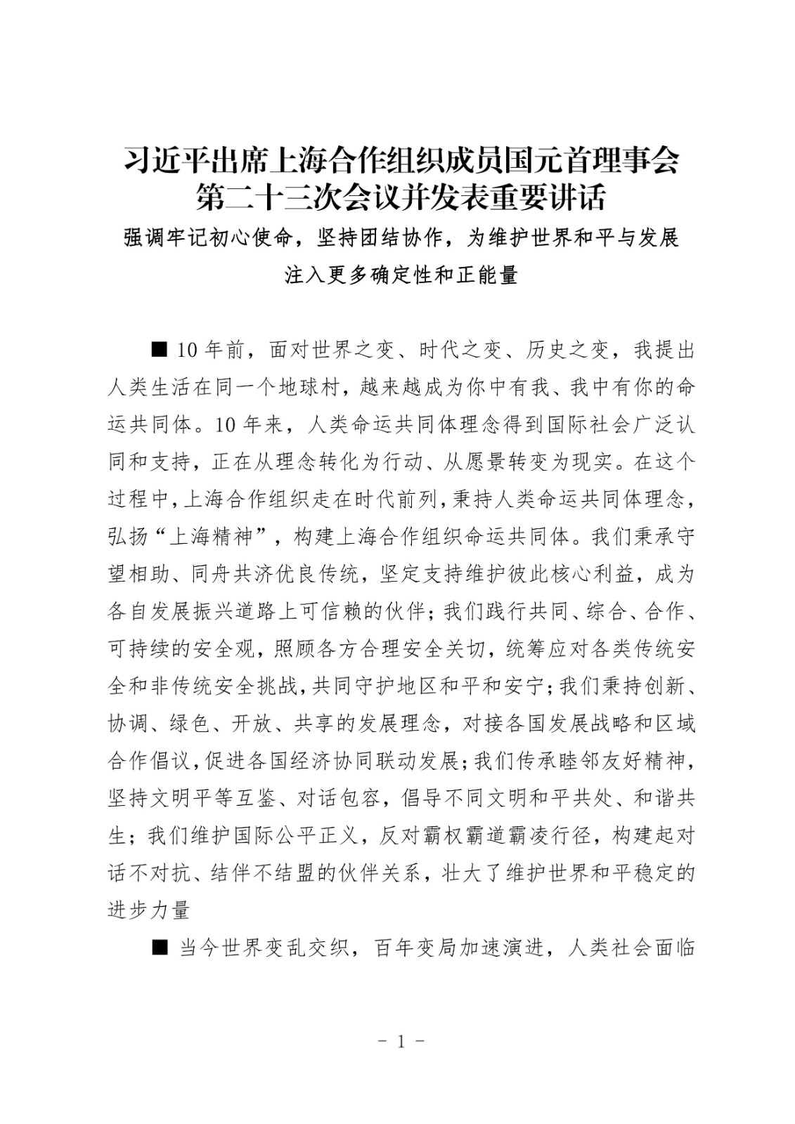 习近平出席上海合作组织成员国元首理事会第二十三次会议并发表重要讲话