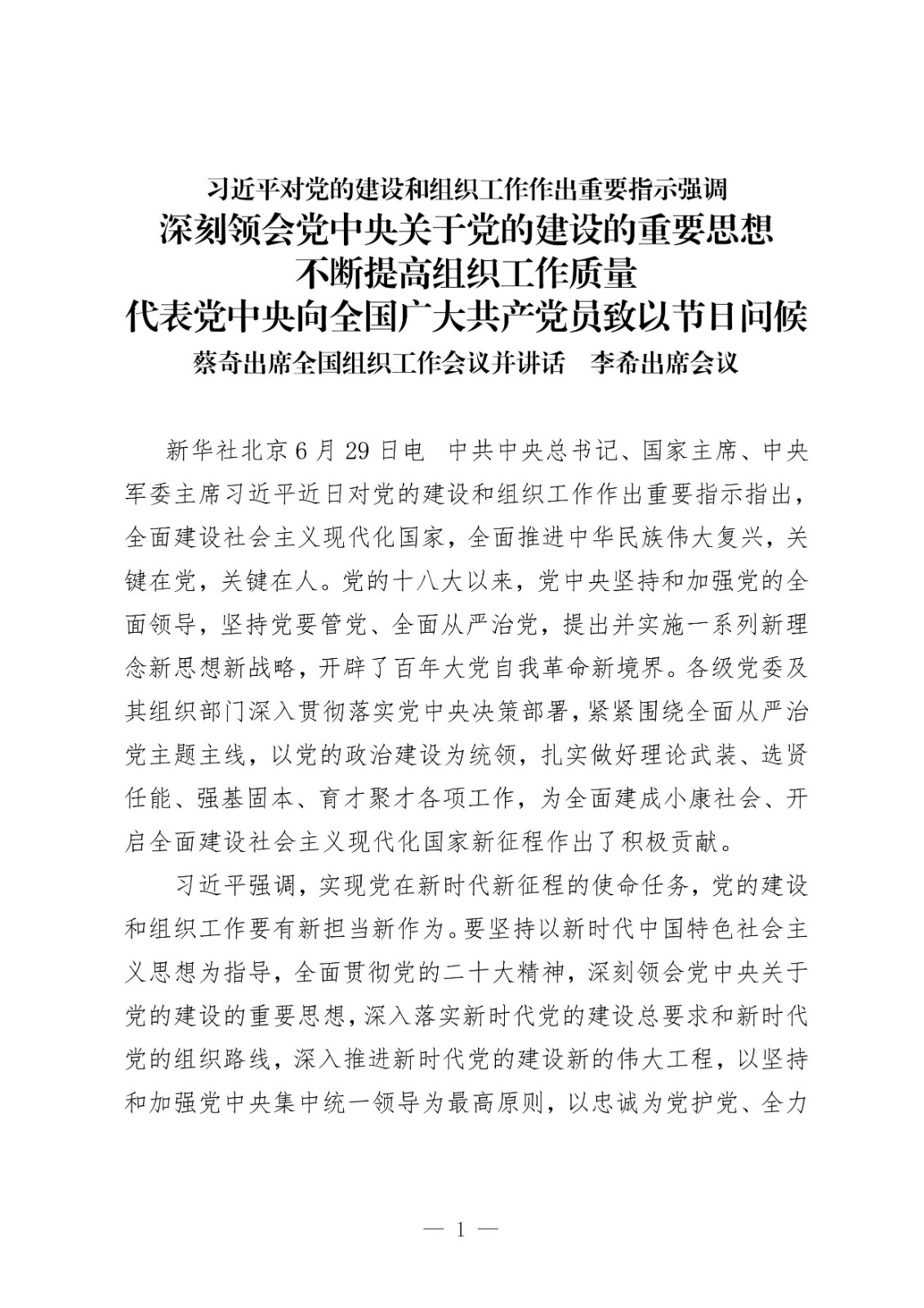 习近平对党的建设和组织工作作出重要指示