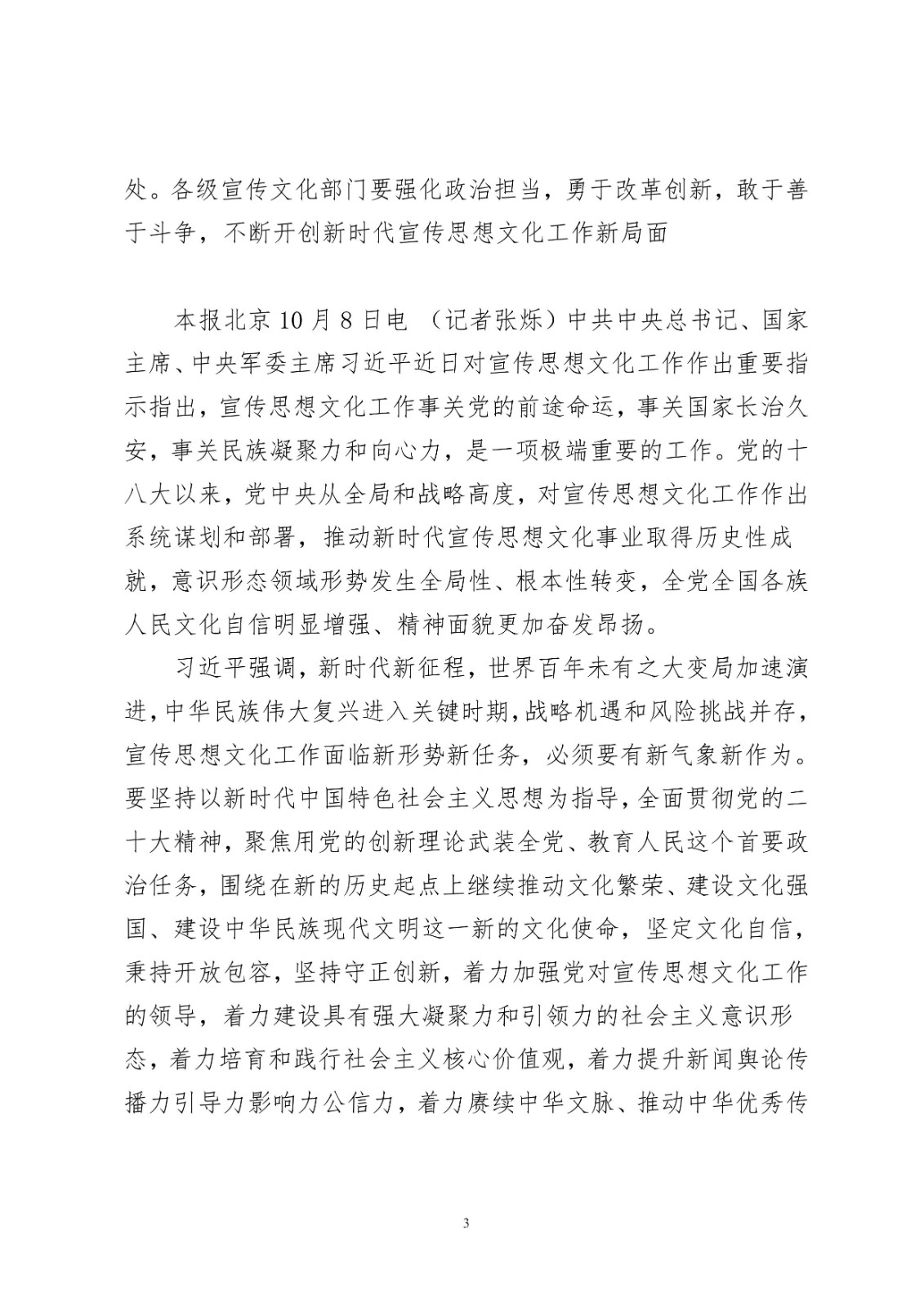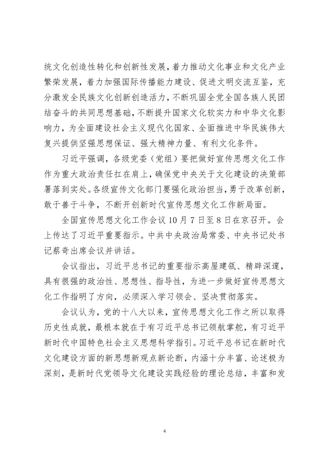 习近平对宣传思想文化工作作出重要指示